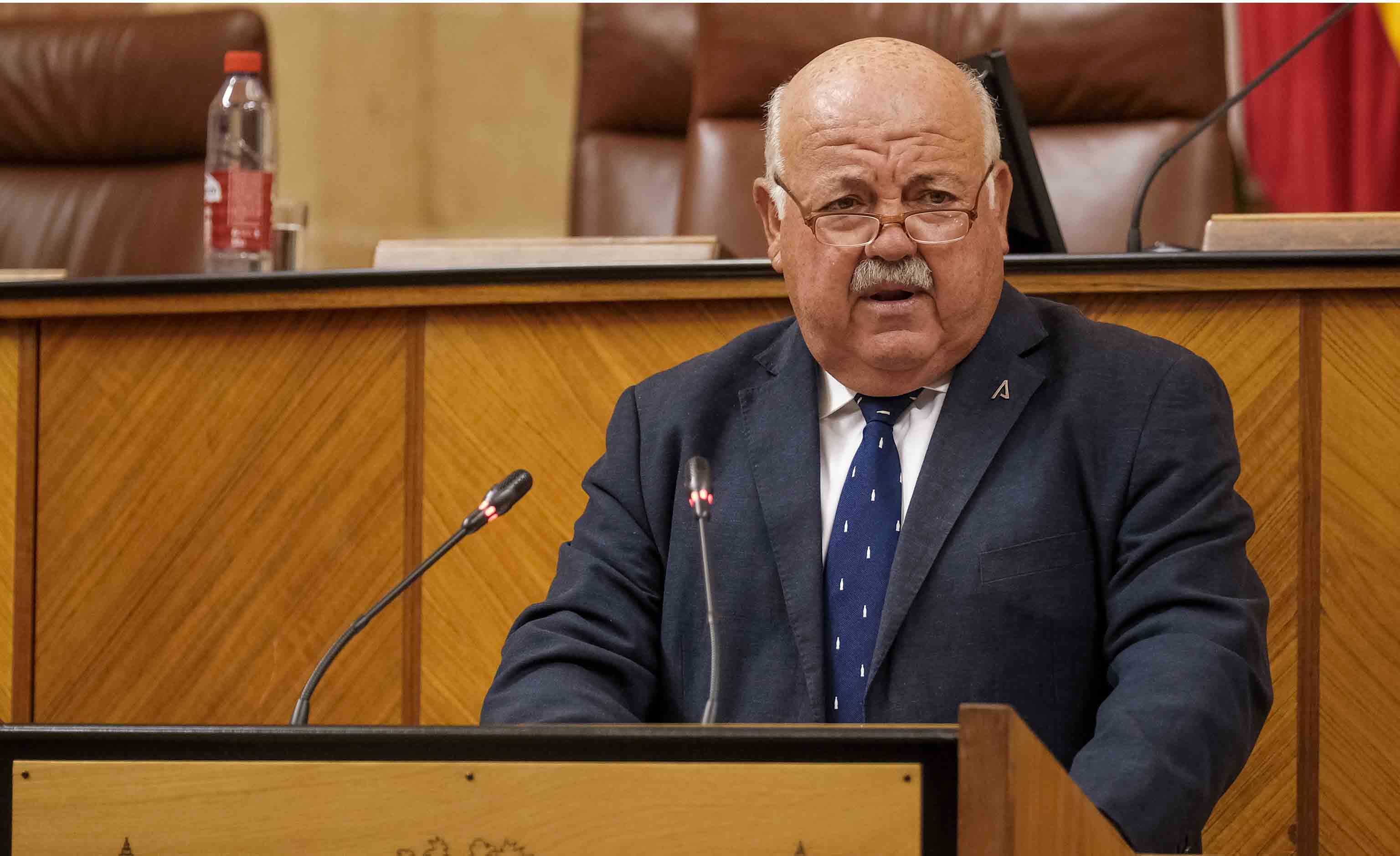 El consejero de Salud y Familias, Jesús Aguirre, durante su comparecencia ante el Parlamento andaluz.