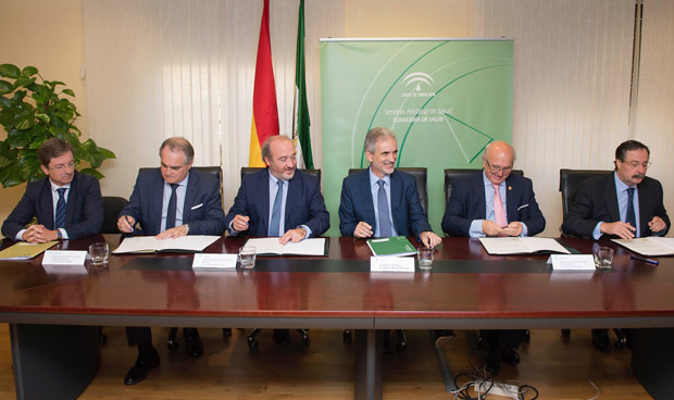 Andalucía ha logrado reducir el uso de antibióticos en centros de salud y hospitales en su lucha contra lo que la propia Organización Mundial de la Salud y la ONU han considerado un problema de salud mundial, como son las bacterias resistentes a antimicrobianos. Así lo ha expuesto el consejero de Salud, Aquilino Alonso, durante la firma de los convenios de colaboración que ha rubricado hoy el director gerente del Servicio Andaluz de Salud, José Manuel Aranda, con el presidente del Consejo Andaluz de Colegios Médicos, Antonio Aguado, el presidente del Consejo Andaluz de Colegios Oficiales de Farmacéuticos, Antonio Mingorance, y el Consejo Andaluz del Colegio Oficiales de Dentistas, Luis Cáceres.
