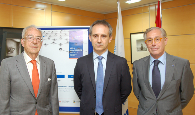 Sobre Lesiones Deportivas ha versado el penúltimo acto del ciclo Aula Montpellier en este curso. El ponente, Fernando Martínez, jefe de la Unidad de Rodilla del Servicio de Traumatología y Ortopedia del Hospital Miguel Servet de Zaragoza, ha contado con la introducción en el acto de quien fuera Jefe de Servicio de Traumatología en el Servet, el profesor Antonio Herrera.