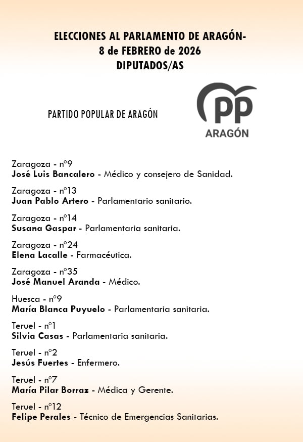 Acompañando a Bancalero, en el número 9 de la lista del PP por la provincia de Zaragoza, hay otros nueve perfiles sanitarios. También por Zaragoza, están