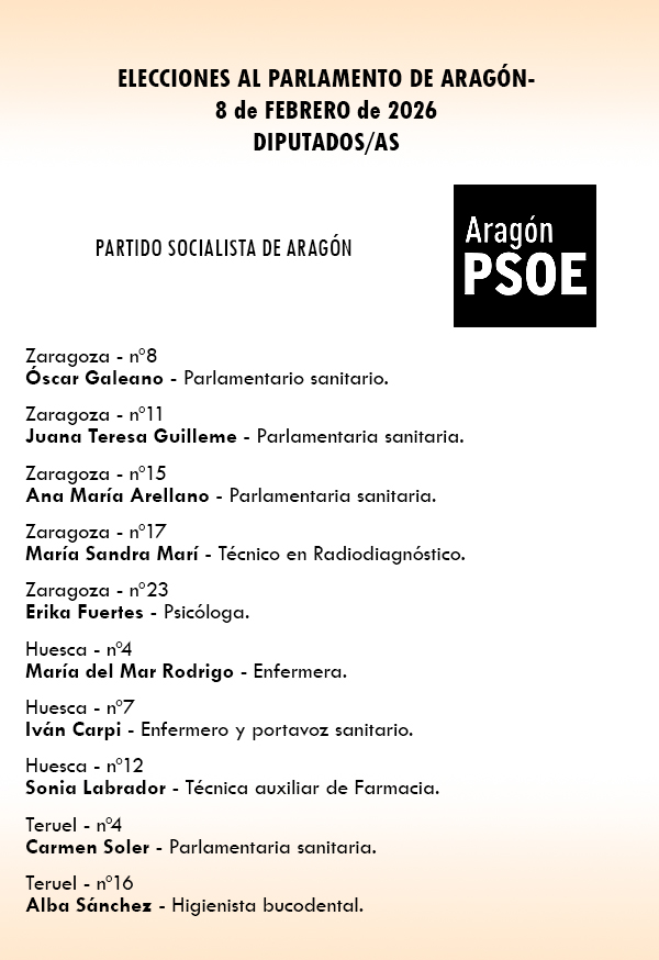 lista zaragozana. Por la provincia que alberga la capital de Aragón se presentan cinco personas con perfil sanitario.
