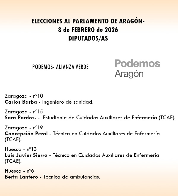 en Teruel no hay ningún representante sanitario en la lista de Podemos, sí que aparecen por Huesca. Se trata de