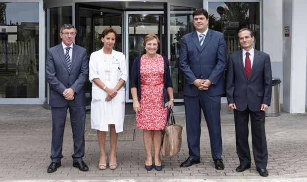 Andrés Larrazabal (segundo por la derecha), gerente del Hospital de Laredo, acompañado de los máximos responsable de la sanidad regional.