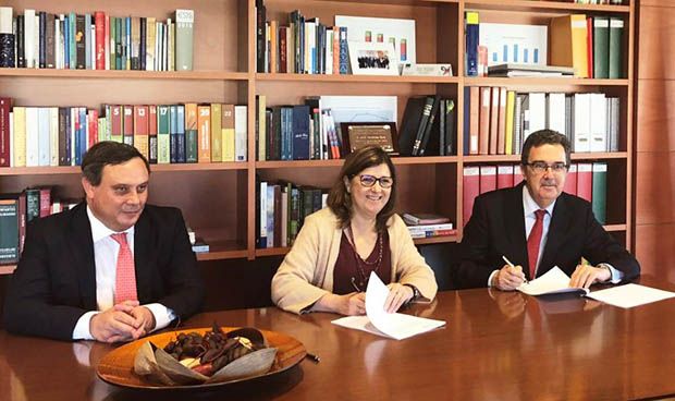 Regina Leal, gerente del Sescam formaliza el convenio con la Fundación Amancio Ortega.