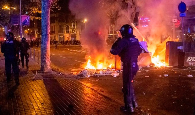 Imagen de los incendios provocados durante los altercados en las calles de Barcelona.