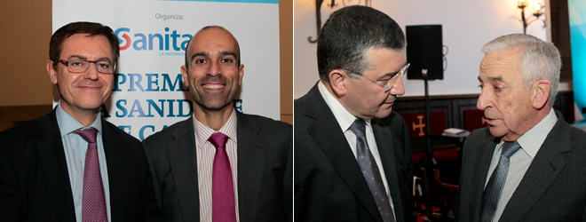 Jesús Vázquez Almuíña, consejero de Sanidad de Galicia; entrega el premio al mejor hospital privado, el HM Modleo, a Luis Busto, Luis Busto Martín y Alfonso Barbagaleta.