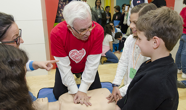 reanimación cardiopulmonar y algo tan sencillo y tan barato como enseñar a poner a una persona de lado para salvar su vida, a su abuelo. Quiero dar las gracias a todo el hospital, al servicio de Cardiología, a la gerencia, y, cómo no, a a Menudos Corazones y a todos lo voluntarios que hacen posible algo tan importante como esto”.