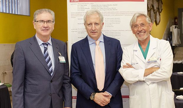 Joseba Barroeta, gerente del Gregorio Marañón; Ángel Arenal, director del curso; y Francisco Fernández Avilés, jefe del Servicio de Cardiología.