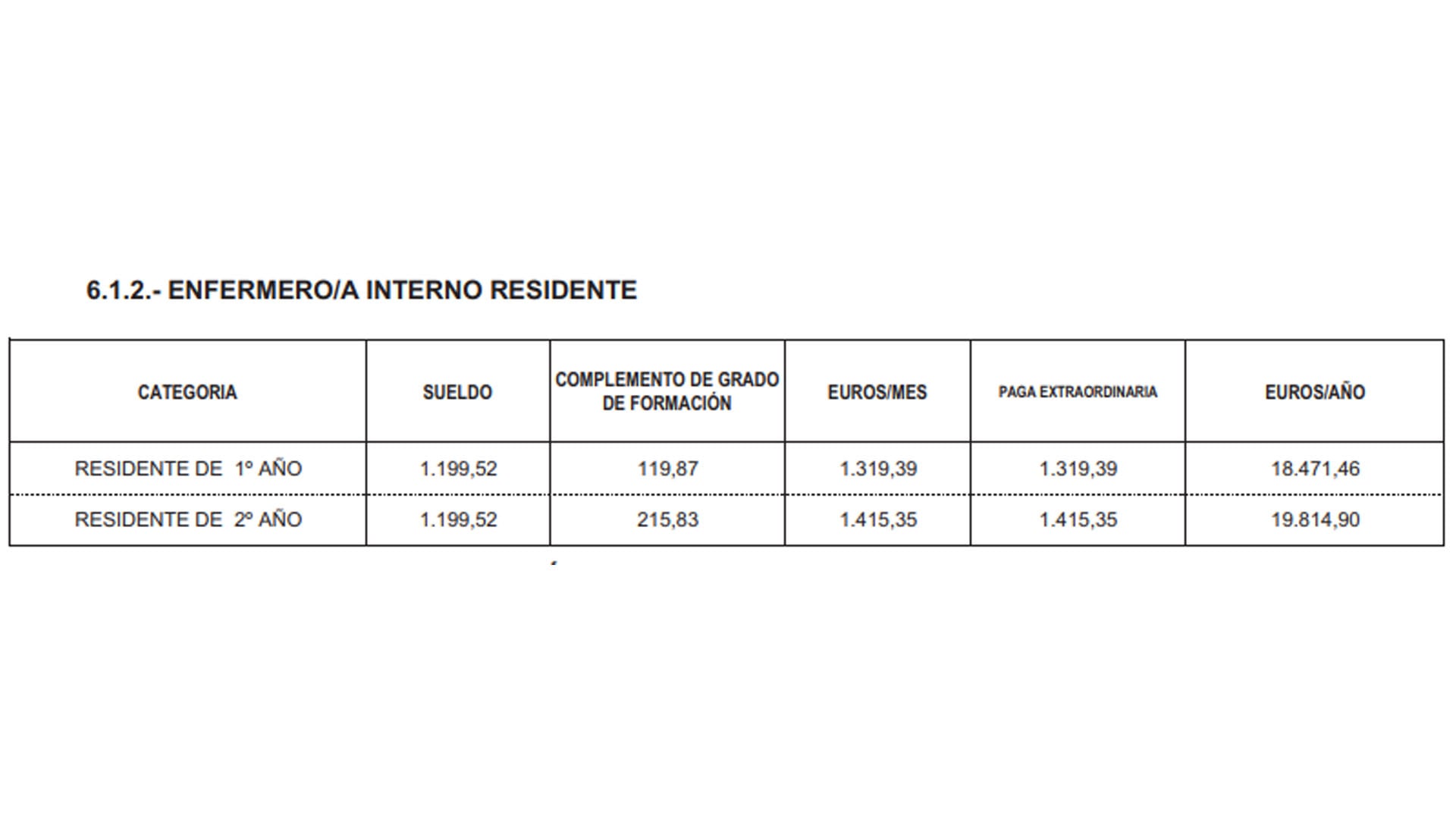 2.052,70 mensuales en los residentes de último año.
