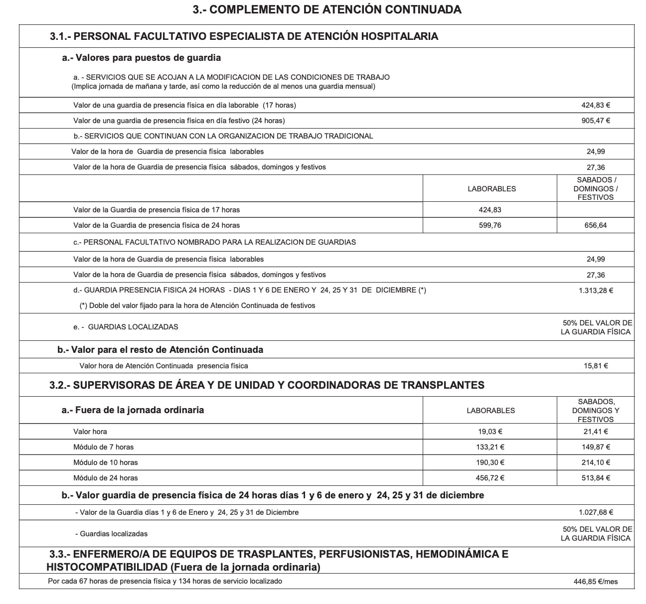 Aquí están contempladas las cuantías del complemento de productividad fija por turno de tarde fijo en categorías deficitarias de médico de Familia y pediatra de Atención Primaria. Se abonará a los profesionales "siempre que