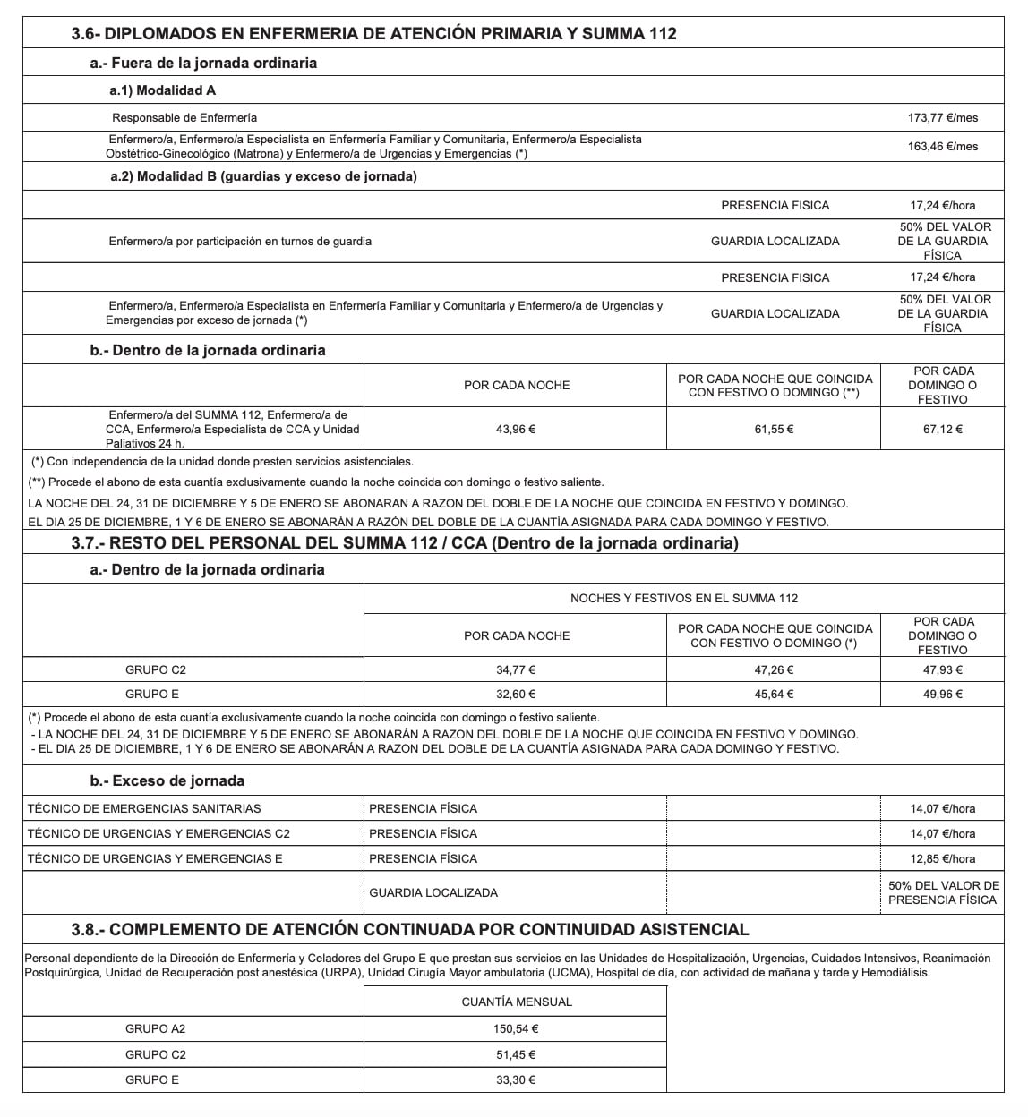 Retribuciones en Atención Primaria y Summa 112