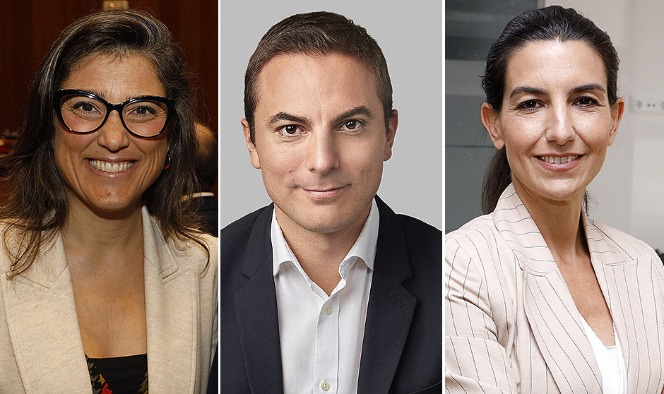 Manuela Bergerot (Más Madrid), Juan Lobato (PSOE) y Rocío Monasterio (Vox).