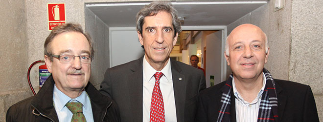 José Ramón Repullo, Médico y profesor de la Escuela Nacional de Sanidad; José Manuel Freire, portavoz sanitario del PSOE en la Asamblea de Madrid; y Carlos Lozano, ex secretario del Colegio de Médicos de Madrid, siendo José Zamarriego presidente.