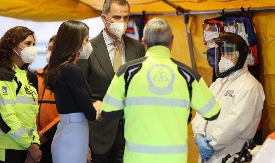 El alcalde, José Luis Martínez-Almeida, ha recibido a los Reyes acompañado de la vicealcaldesa, Begoña Villacís; el ministro del Interior, Fernando Grande-Marlaska; la delegada del Gobierno, Mercedes González, y los exalcaldes Alberto Ruiz-Gallardón, Ana Botella y José María Alvarez del Manzano, que gobernaba cuando se creó el servicio.