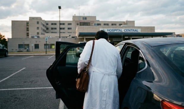 Personal sanitario ingresando a un coche para desplazarse al domicilio de un paciente. (Imagen generada con IA. Gemini)