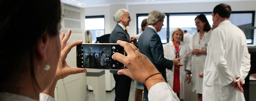 Foto de familia con los directivos del laboratorio del Hospital 12 de Octubre. |