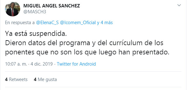 “dieron datos del programa y del currículum de los ponentes que no son los que luego han presentado”.