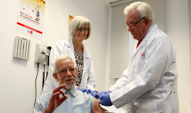 El consejero en el momento de vacunar contra la gripe a otra de las pacientes.
