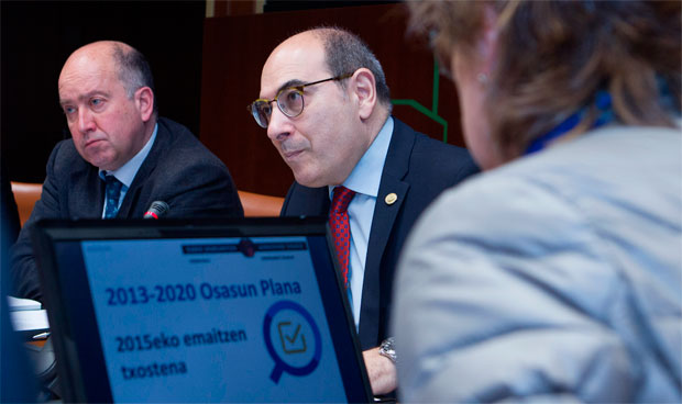 Tras dos años de la puesta en marcha del Plan de Salud 2013-2020, Darpón ha asegurado que “un 70% de los objetivos y acciones contemplados han sido ya puestos en marcha por el Gobierno Vasco”. El consejero ha querido destacar “el sustancial avance de las iniciativas por la salud desarrolladas en el área de acciones de carácter intersectorial, interdepartamental o transversal”. En este sentido, ha hecho hincapié en la integración de la Atención Sociosanitaria, que “ya es efectiva en todas las organizaciones de Osakidetza”, la constitución de redes comunitarias de salud en 20 municipios, iniciativas comunitarias y municipales para la promoción de la actividad física y el programa Ciudades Amigables con las personas mayores.