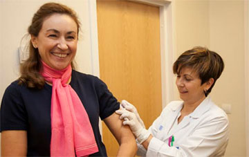 La consejera riojana de Salud, María Martín se ha vacunado este viernes contra la gripe en pleno desarrollo de la Campaña de Vacunación Antigripal, con el objetivo de sensibilizar a la población en general, y a los profesionales sanitarios en particular, de la conveniencia de vacunarse contra enfermedad como medida más eficaz para prevenirla. En el acto, que se ha desarrollado en el centro de salud de Cascajos, también ha participado la directora general de Salud Pública y Consumo, Rosa López.