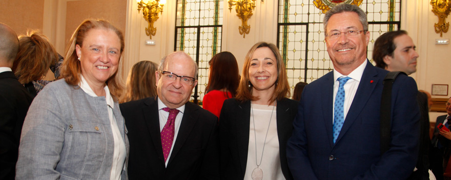 Carmen Chofré, asesora de Carmen Montón; Carlos Macía, jefe de gabinete de la consejera; Monica Almiñana, gerente del Hospital La Fe; y Ricardo Campos, subsecretario de la Consejería de Sanidad Universal y Salud Pública.