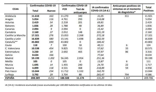 Últimos datos oficiales de coronavirus en España