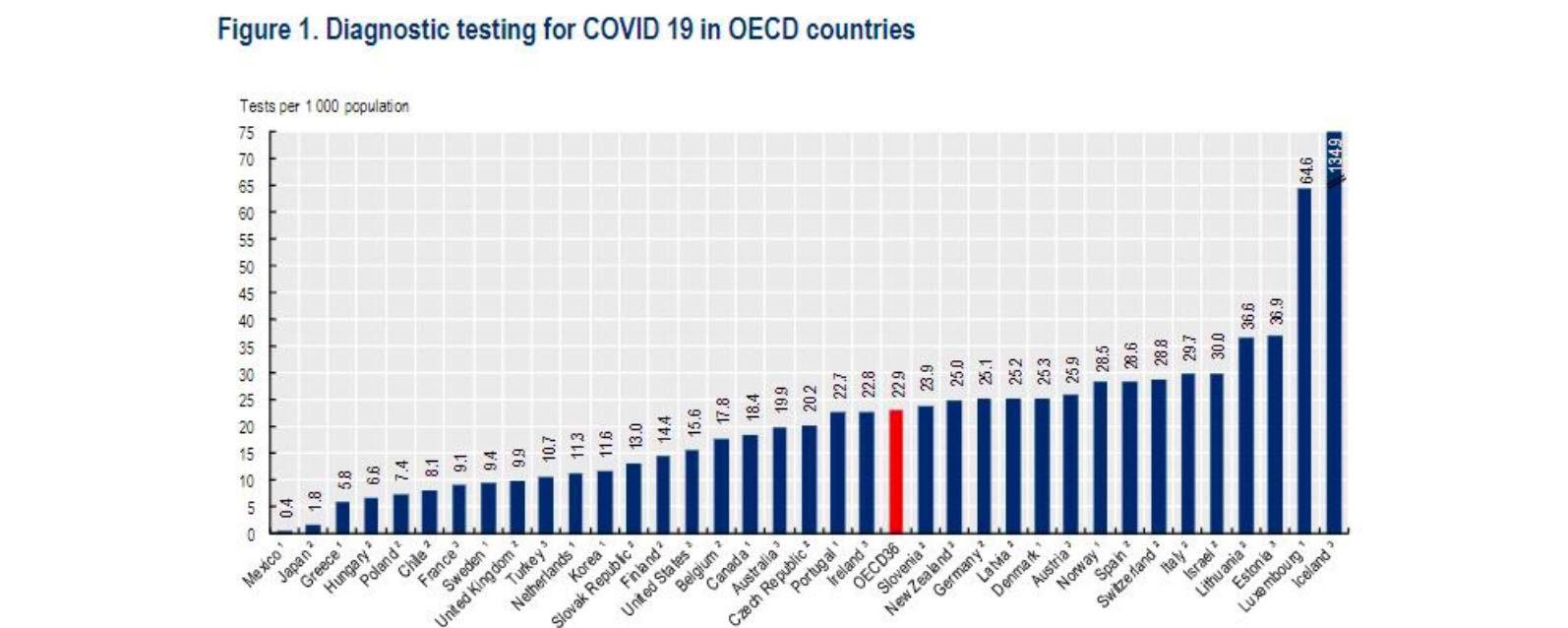 La Organización para la Cooperación y el Desarrollo Económico (OCDE) ha elaborado un informe en el que sitúa a España entre los diez primeros países del mundo que más pruebas del nuevo coronavirus Covid-19 realizan, y destaca la importancia de realizar estas pruebas para la definición de las estrategias de confinamiento y la reducción de los riesgos de nuevos brotes.