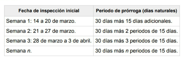 (leer aquí), se le suman a esa prórroga 15 días por cada semana respecto al fin del citado estado de alarma.