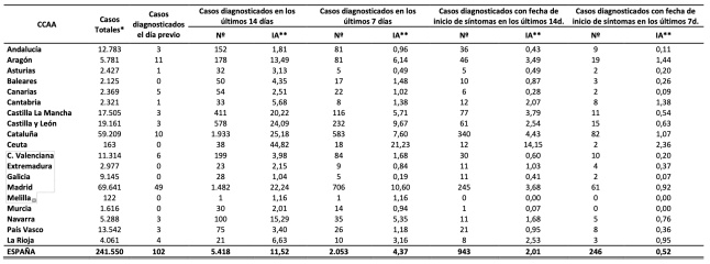 Ha registrado 13 fallecidos en las últimas 24 horas, con lo que el total de muertos desde el inicio de la pandemia ha subido hasta 29.155. El número de casos confirmados ha aumentado hasta 153.977, tras notificar 343 nuevos contagios.