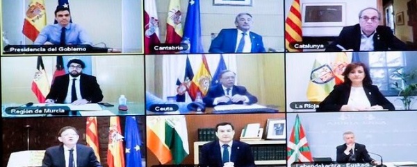 El presidente del Gobierno, Pedro Sánchez, se reúne desde poco después de las diez de la mañana de este domingo por décimo tercera vez con los presidentes de las Comunidades Autónomas, de Ceuta y Melilla, dentro de las reuniones semanales para abordar la crisis por el coronavirus y las medidas para abordarla. Tras este encuentro comparecerá en rueda de prensa.