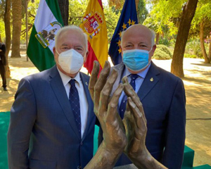 La Junta de Andalucía ha presentado en un acto en el Palacio de San Telmo, sede de la Junta de Andalucía, ocho esculturas del artista sevillano Navarro Arteaga que homenajean el trabajo de los profesionales sanitarios ante la pandemia por Covid-19. Estas obras se instalarán en reconocidos puntos de las capitales de provincia de Andalucía y muestran dos manos juntas como forma de representar los aplausos que los ciudadanos han dedicado a enfermeras y profesionales sanitarios en los meses de confinamiento en sus hogares. Informa