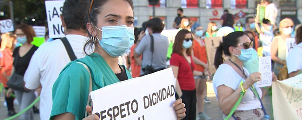 Covid-19: Sanitarios madrileños se concentran en Sol para pedir más recursos e inversión en la sanidad pública