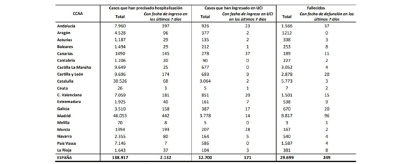Últimos datos oficiales de Covid-19 en España