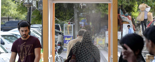 Arco de desinfección por el coronavirus en Islamabad, Pakistán
