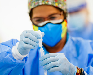 Sanitaria realizando un test de antígenos