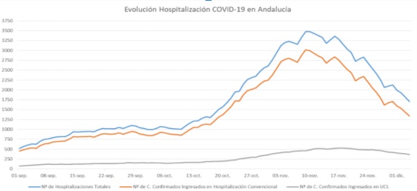 Bajan los ingresos por Covid en Andalucía a 1.707