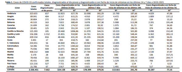 Las comunidades autónomas han notificado este lunes al Ministerio de Sanidad 84.287 casos de Covid-19, relativos a los tres días del fin de semana, de los que 7.662 han sido diagnosticados en las últimas 24 horas, frente a los 17.039 registrados el viernes, elevándose la cifra global de personas infectadas por coronavirus desde el comienzo de la pandemia en las 2.336.451.
