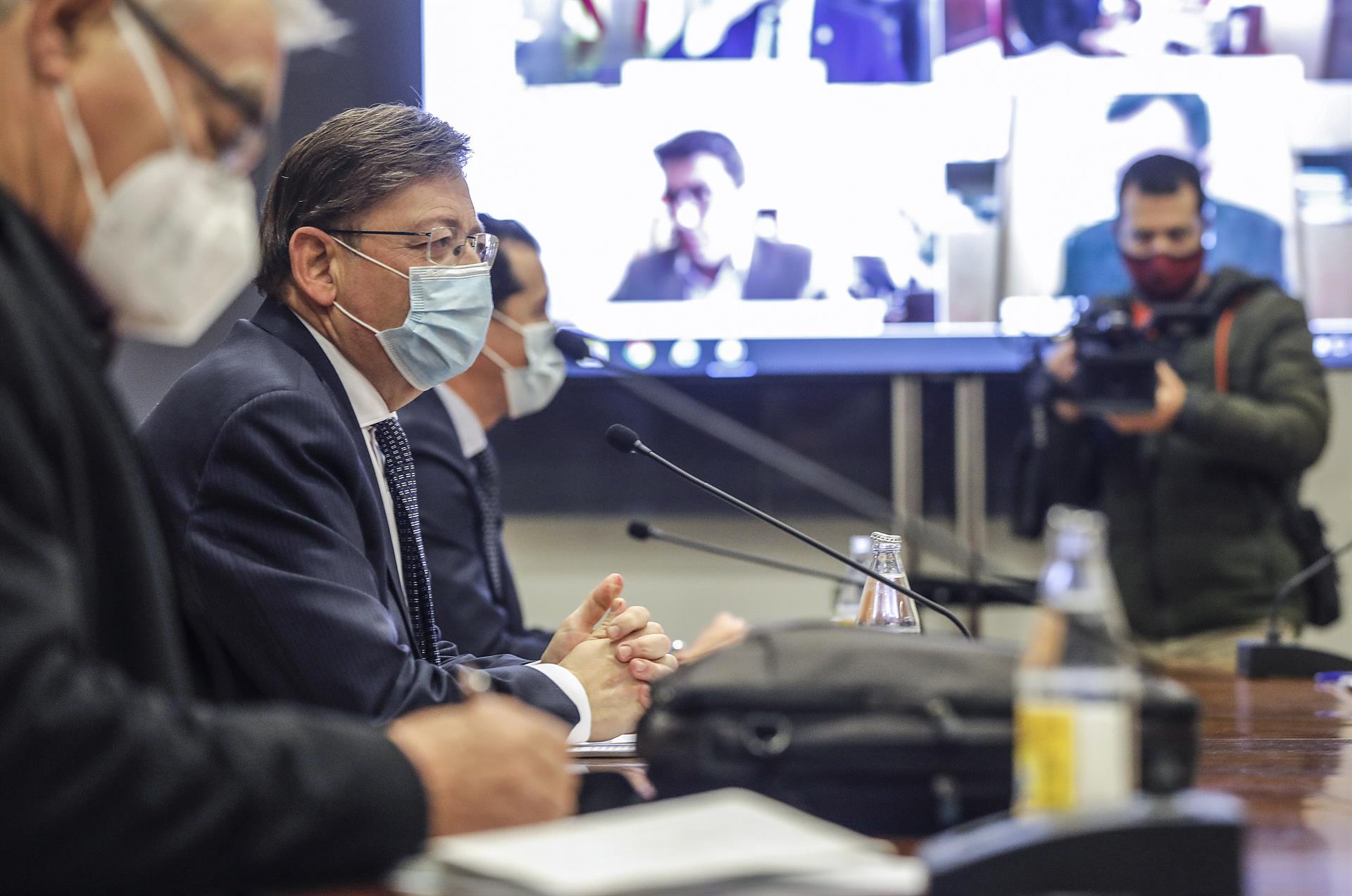 El presidente de la Generalitat, Ximo Puig preside la reunión de la mesa institucional en Valencia (España).