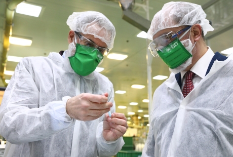 El Presidente de Aragón visita la planta donde se fabrican las jeringuillas para la vacuna del Covid-19