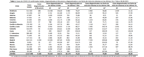 Asimismo, ha manifestado que la tasa de incidencia acumulada durante los últimos siete días es de 110,1 casos por cada 100.000 habitantes, con cerca de 218.600 casos activos. La cifra de incidencia está a la baja durante los últimos días, tras un aumento en marzo.