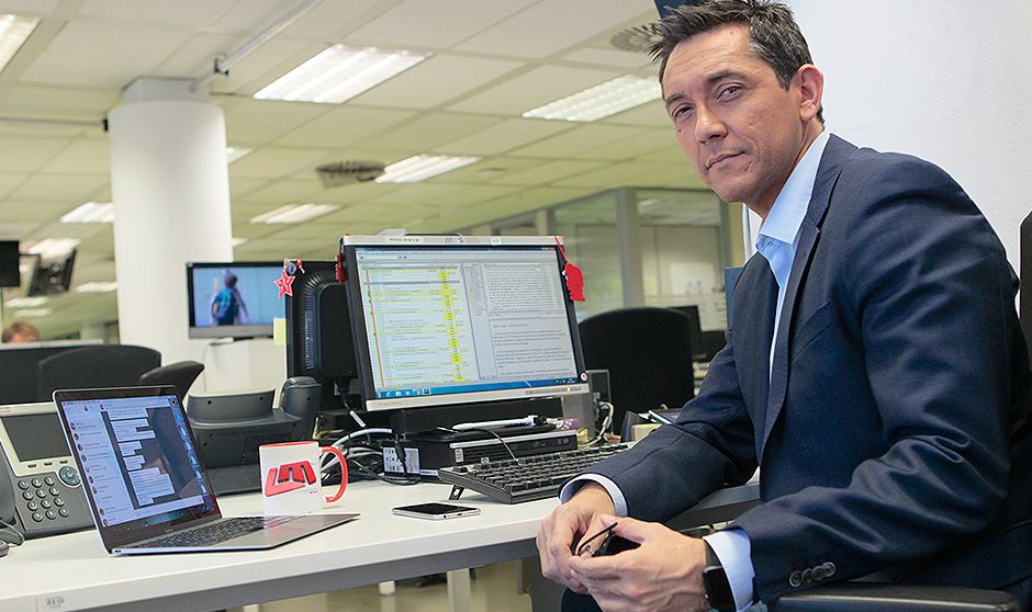 La adrenalina que desprende durante más de tres horas delante de la cámara no se calma cuando se apaga la luz de directo. Tiempo después de despedir el programa aún da instrucciones, se levanta de la mesa o manipula su (inseparable) iPad en busca de algo concreto, a la vez que mira de reojo las pantallas donde emite la competencia. Mientras abandona el plató y recorre los pasillos de Mediaset ya ha bajado una marcha, pero se dirige a redacción con el ansia de quien aún tiene mucho que contar y mucho por preparar para el día siguiente.
