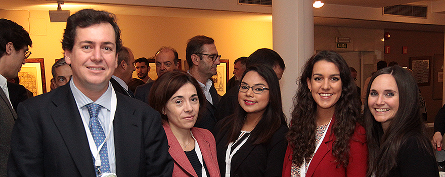 Alumnos del Máster de CEU de Derecho Sanitario posan con sus becas, acompañados de sus padrinos. |