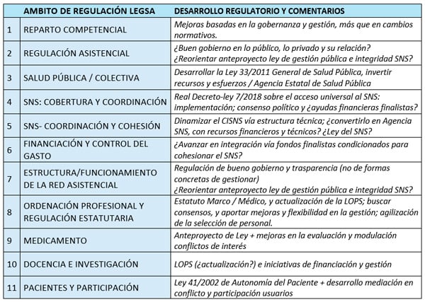 mayor carga de consenso técnico y menor visibilidad política para evitar alimentar las controversias. Y, cuando hubiera otro clima de menor enfrentamiento institucional y político, cabría pensar en una LEGSA-trama, donde ubicar la urdimbre del bello tapiz de nuestro sistema público de salud.