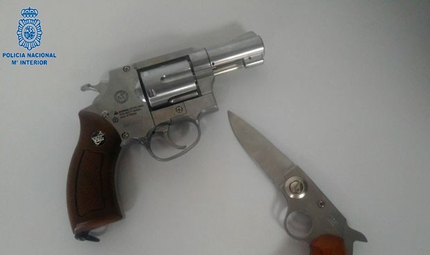 aire comprimido y un arma blanca con forma de revolver.