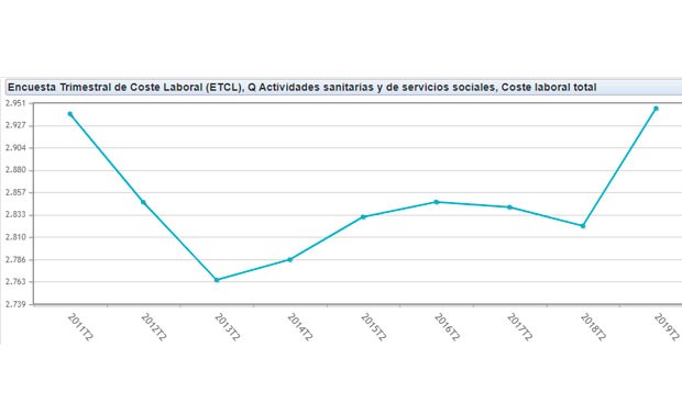 con la de hace un año, la subida también sigue siendo positiva aunque algo menos llamativa. En la misma fecha de 2018, el INE publicaba que el coste medio del salario sanitario
