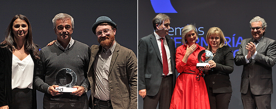 A la izquierda la entrega del premio de Innovación y Creatividad; a la derecha, María José Rey y su equipo recogen el premio Vivesoy de Autocuidado.