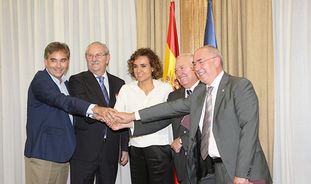 Los representantes de médicos y enfermeros posan con la ministra de Sanidad.