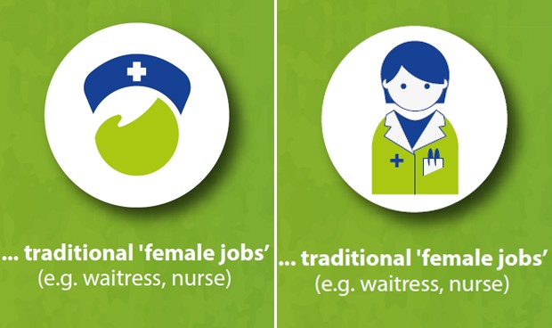A la izquierda, el antiguo icono europeo para representar a la enfermera. A la derecha, el rediseño.