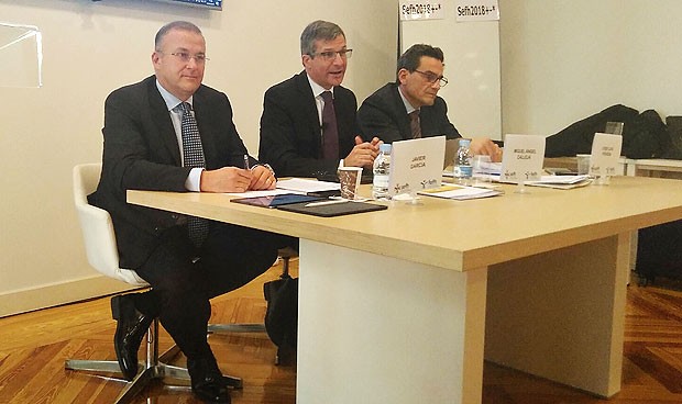 De izquierda a derecha: Javier García Pellicer, tesorero de la SEFH; Miguel Ángel Calleja, presidente de la SEFH, y José Luis Poveda, jefe de Farmacia de La Fe.