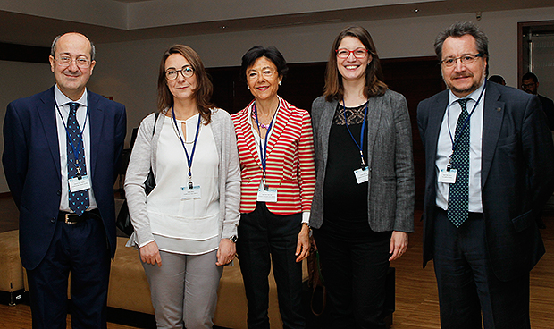 De pie, Amelia Sánchez Guerrero. Sentados, de izquierda a derecha: Francisco Merino, Eva Romá (del Servicio de Farmacia del Hospital La Fe) y Belén Escribano.